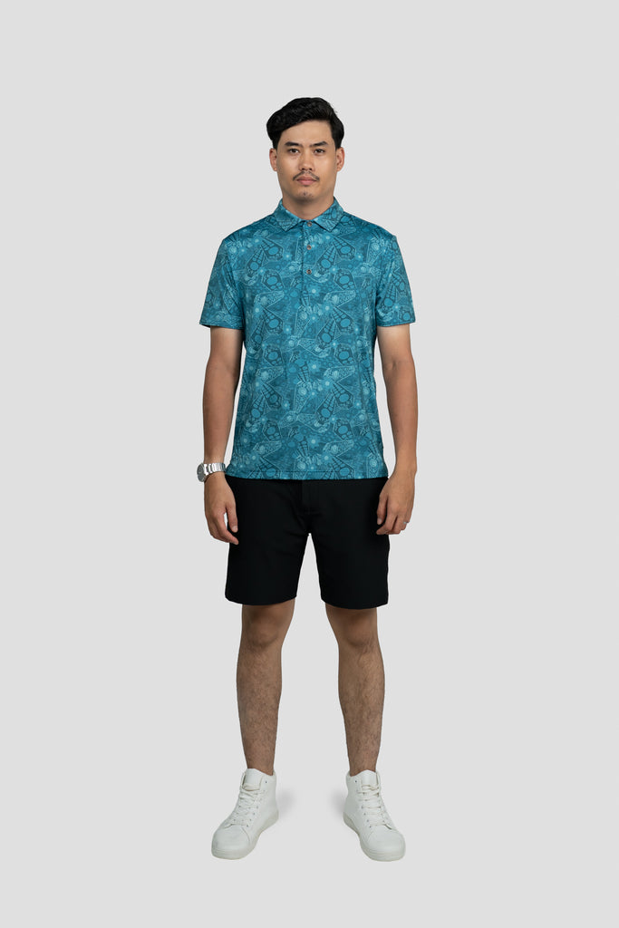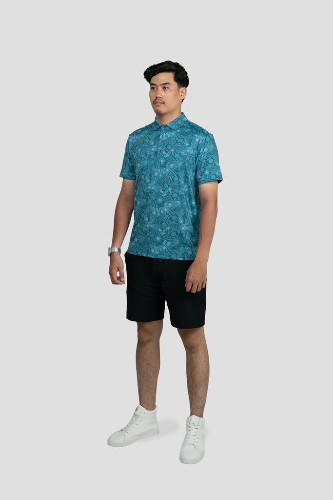 Activewear Polo Shirt - Congkak in Blue Jasper