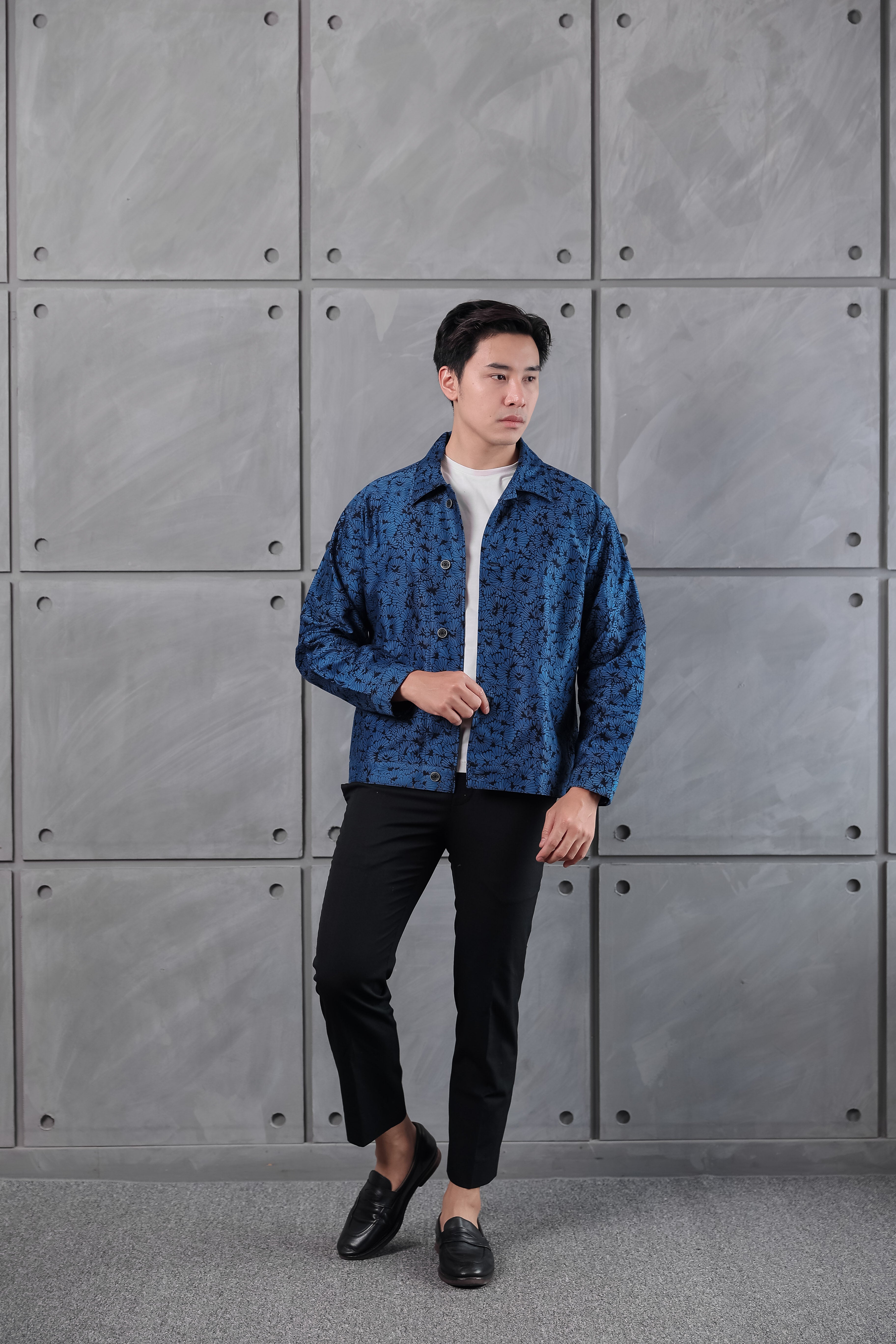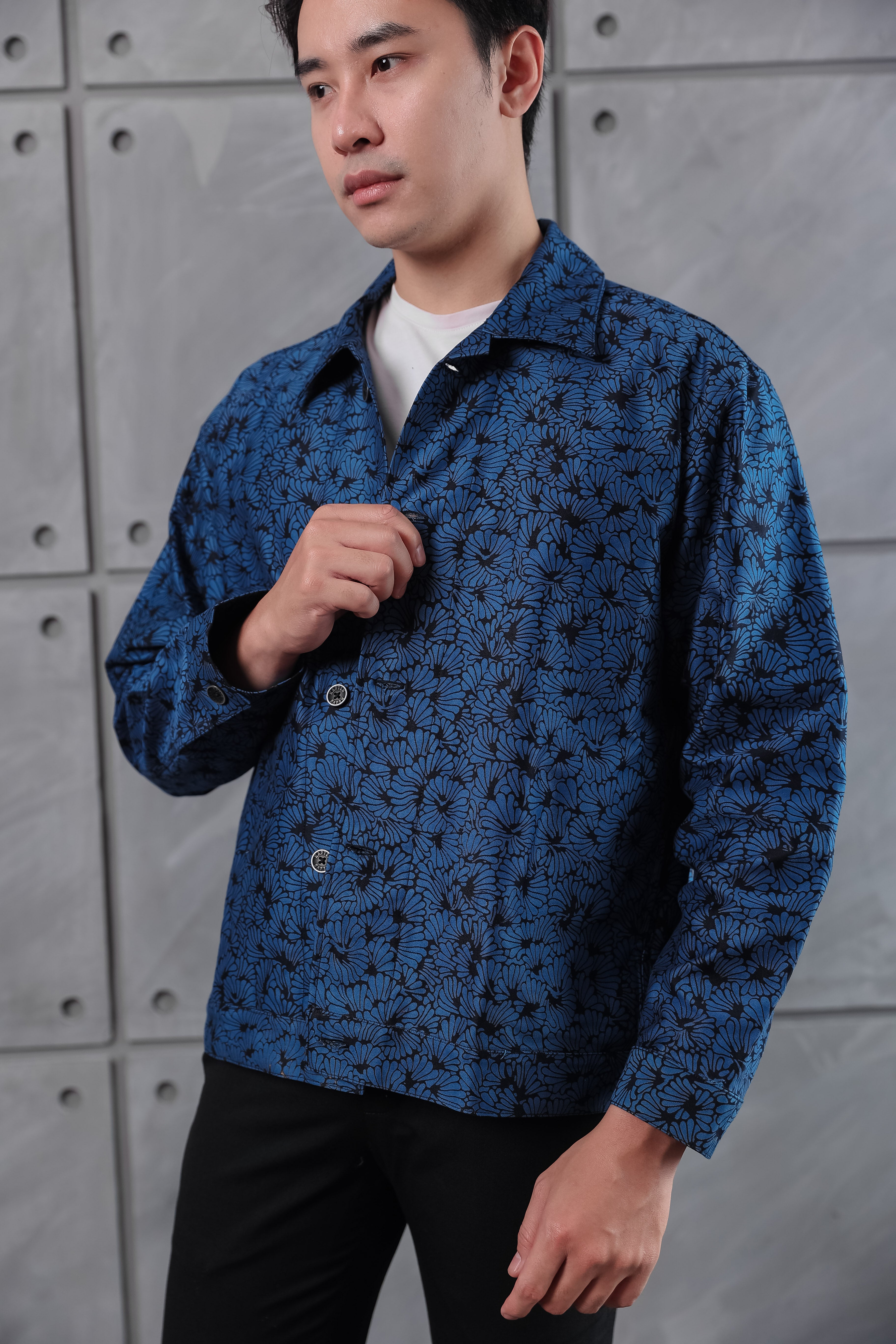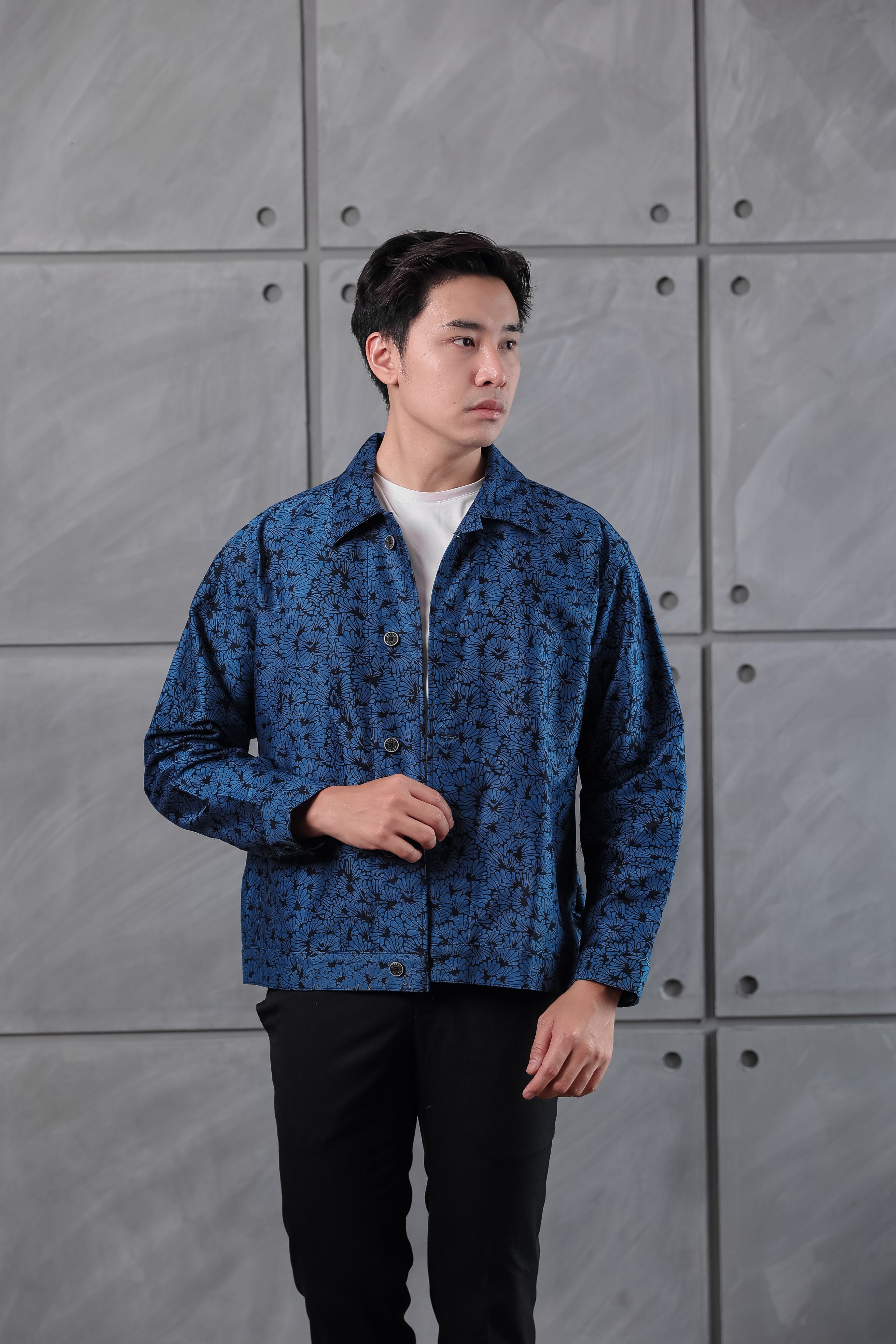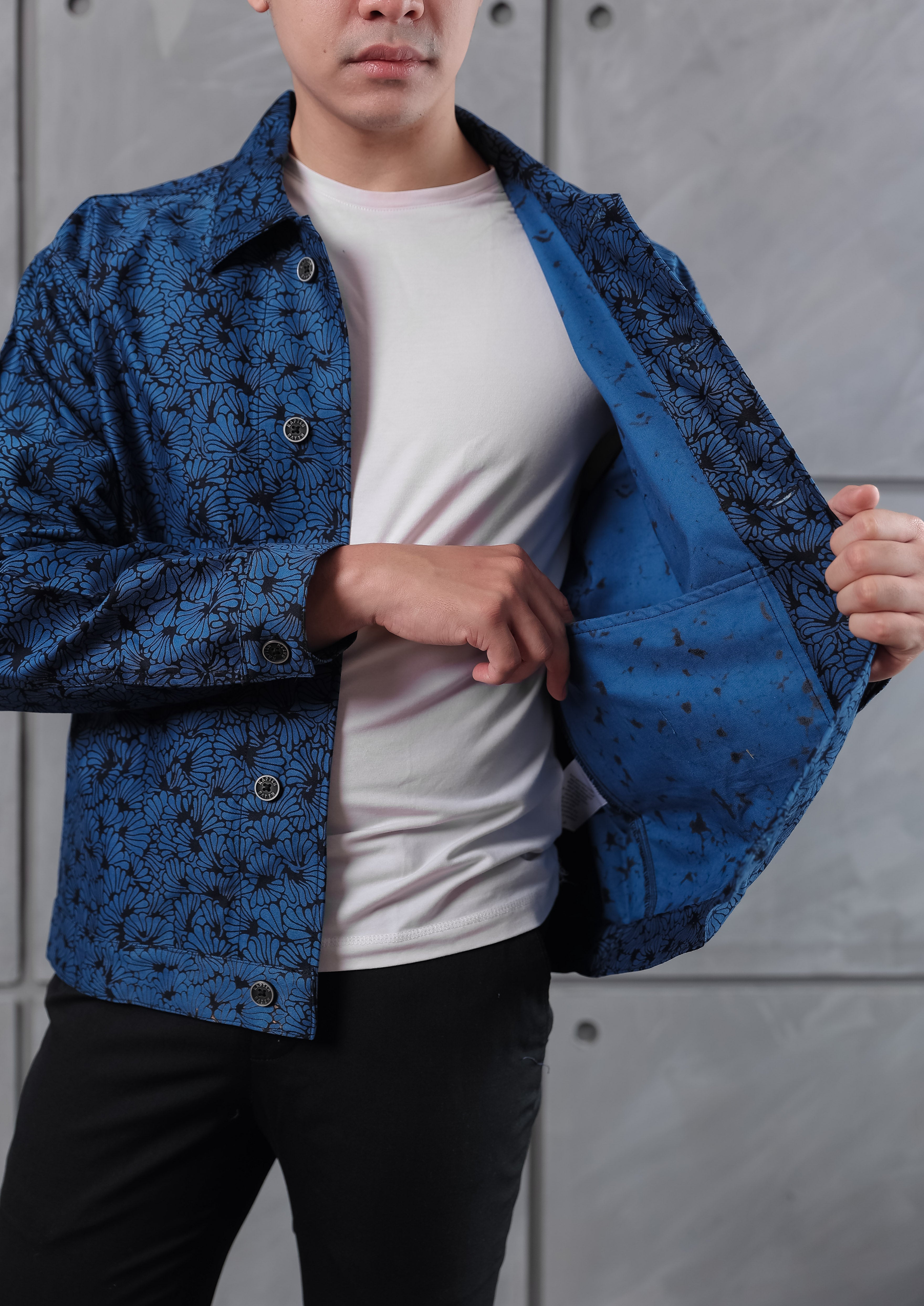 Cut from heavyweight cotton canvas and hand-blocked with batik, the Endura Jacket holds a sense of craft and quiet strength. Its dense weave gives structure and shape, softening gradually with wear until it feels unmistakably yours.