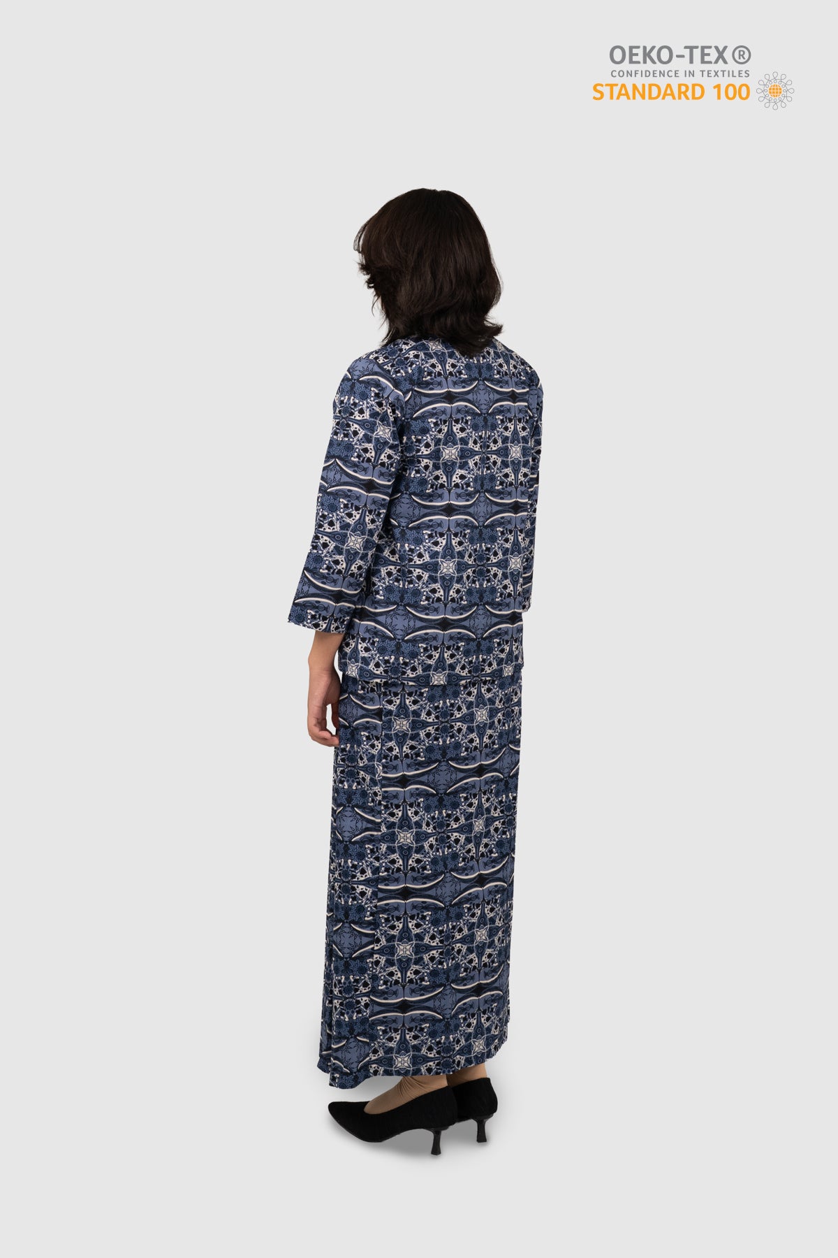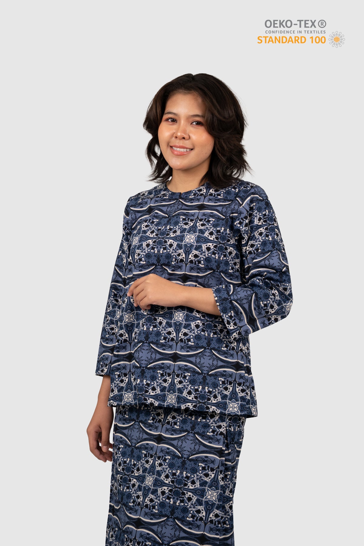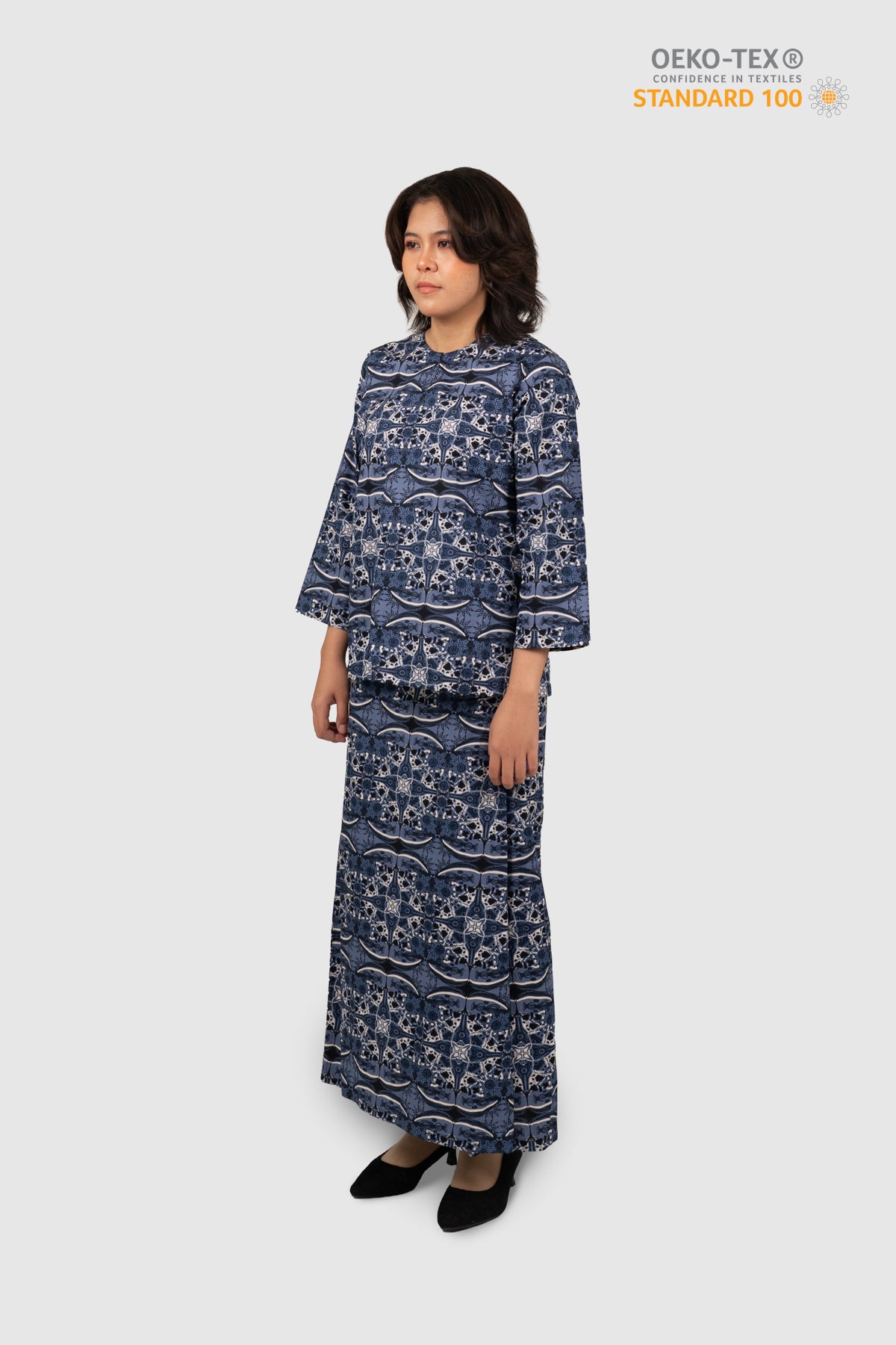 Baju Kurung Kedah Set from the Nusantara Series is crafted from 100% cotton and features a high-quality printed batik design. Using a rotary screen printing method, our in-house designer ensures vibrant, consistent prints on both the front and back of the fabric.