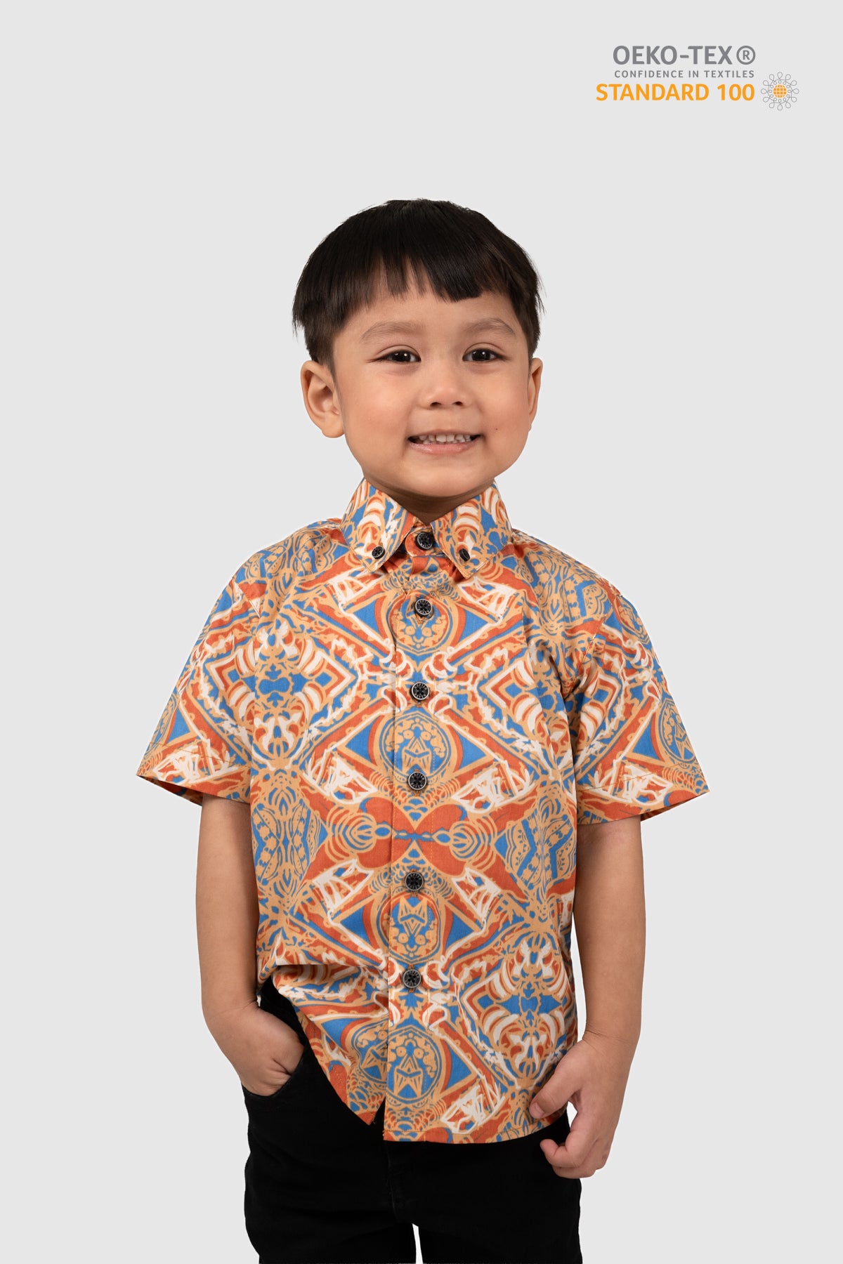 This shirt is certified STANDARD 100 by OEKO-TEX®. All components of the shirt; every thread, button and other accessories, are tested harmless for human use.
