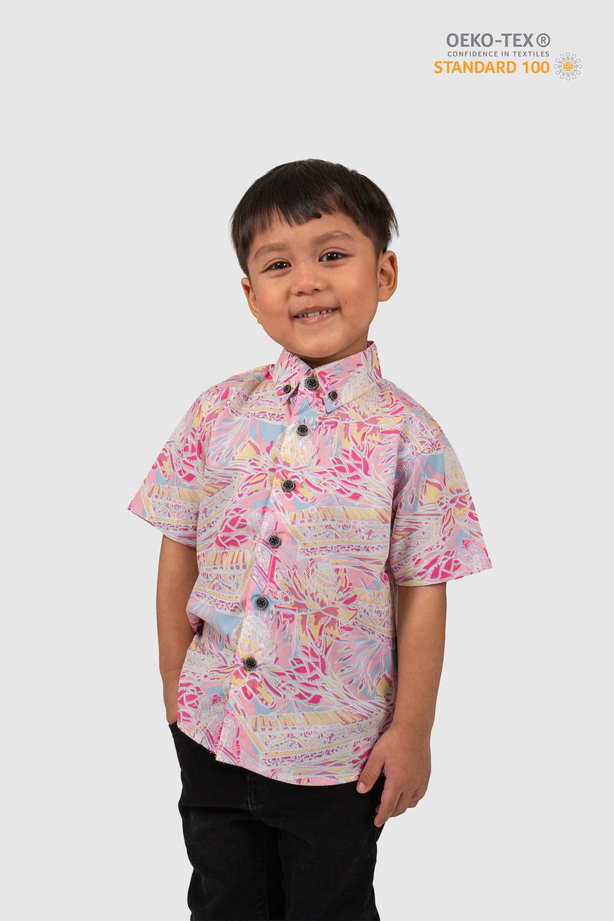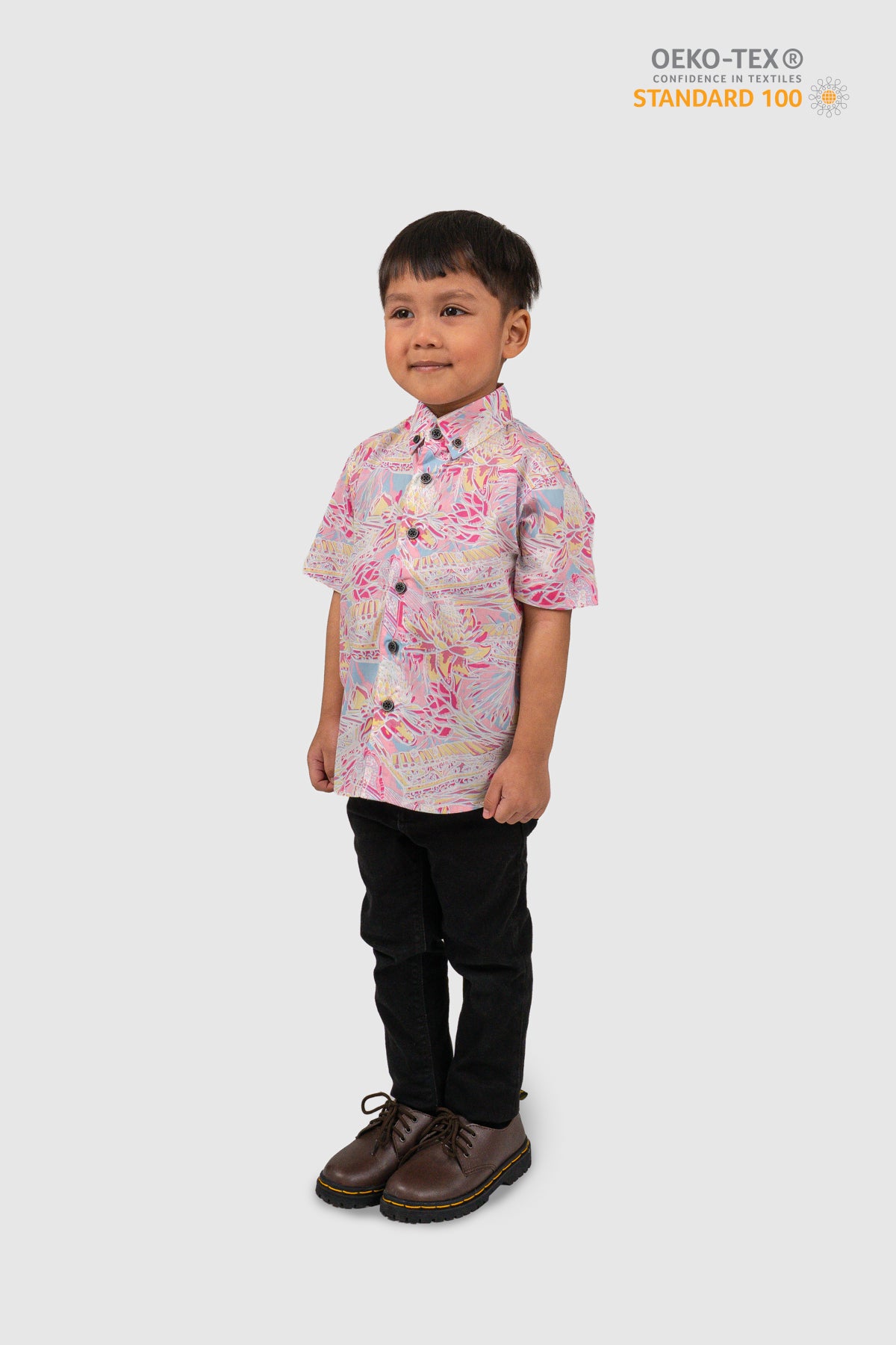 This shirt is certified STANDARD 100 by OEKO-TEX®. All components of the shirt; every thread, button and other accessories, are tested harmless for human use.