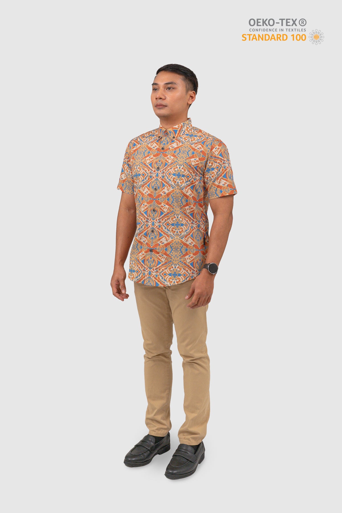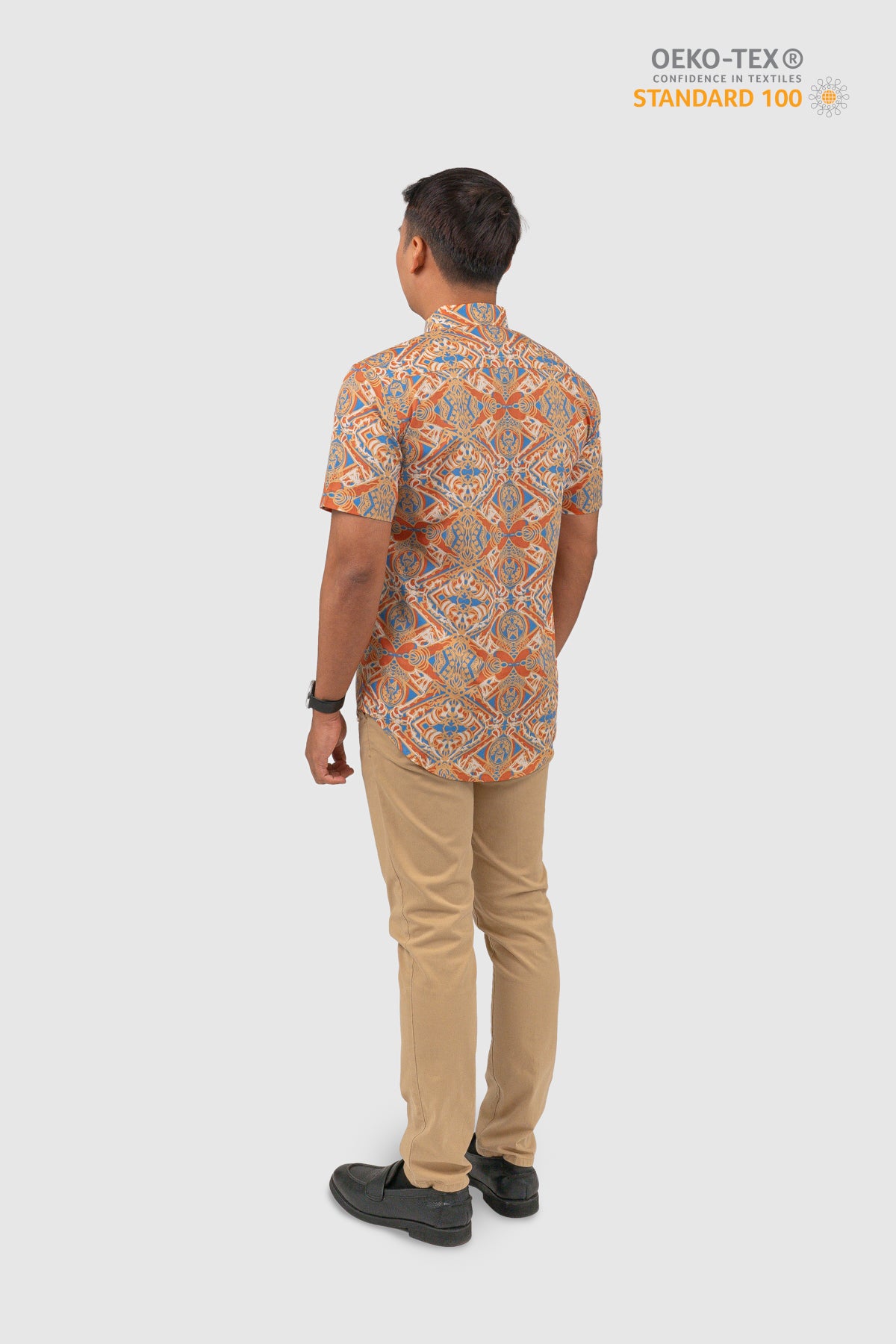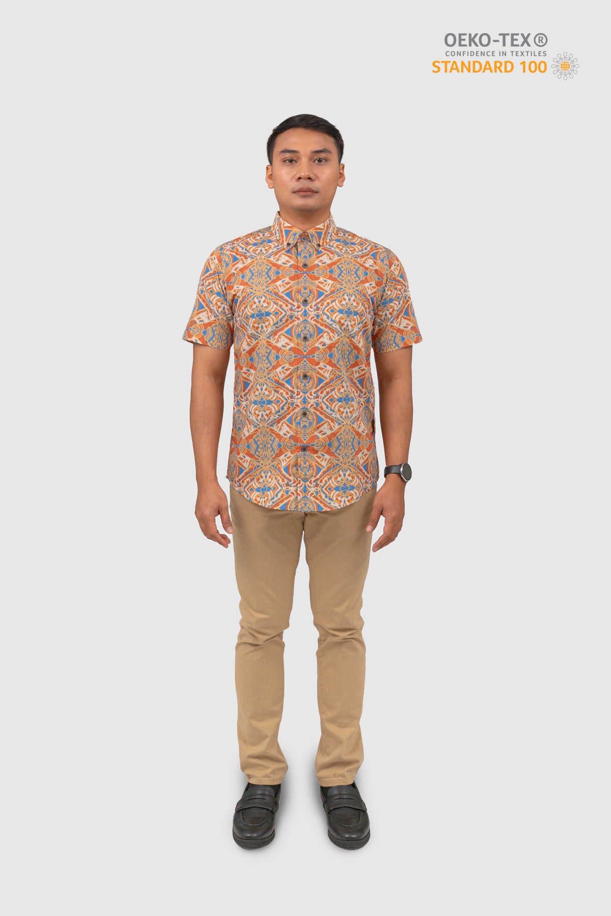 This shirt is certified STANDARD 100 by OEKO-TEX®. All components of the shirt; every thread, button and other accessories, are tested harmless for human use.