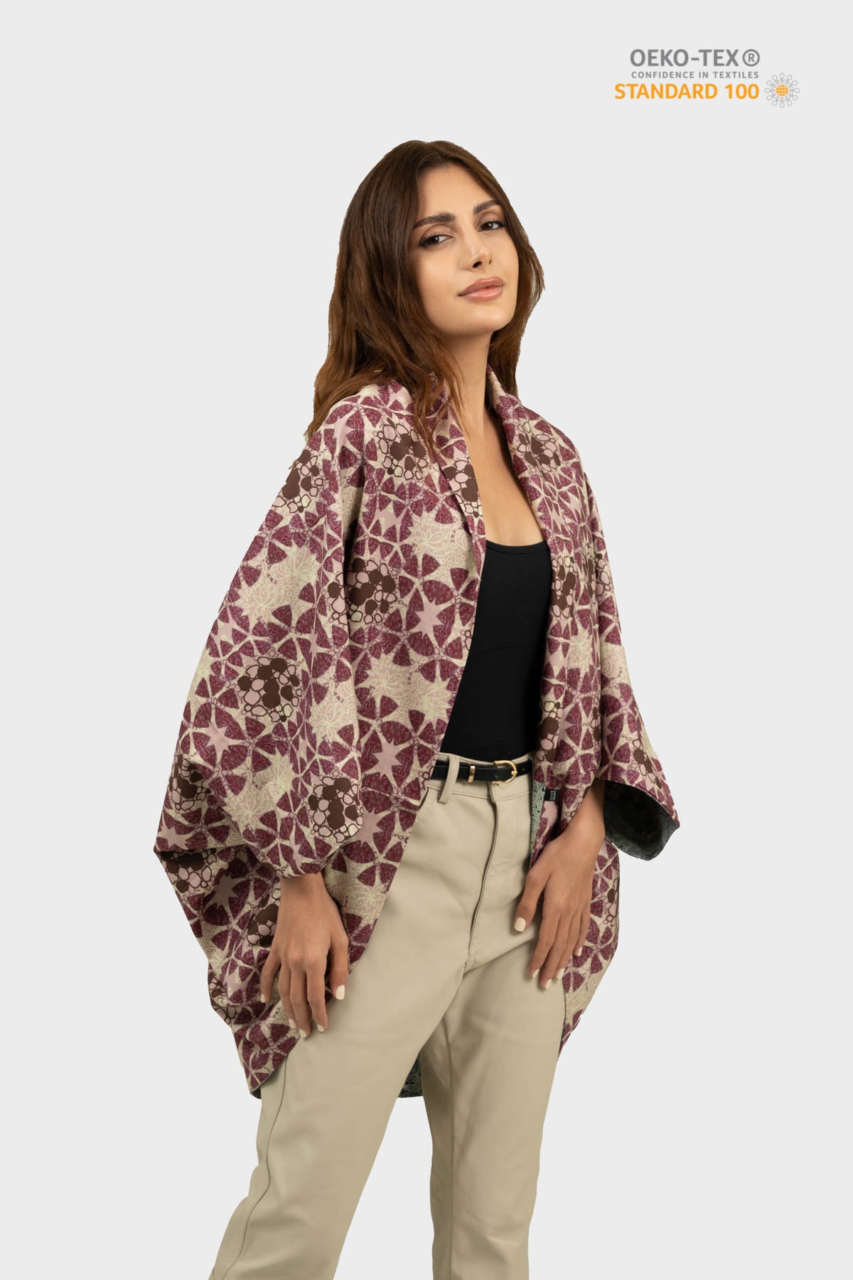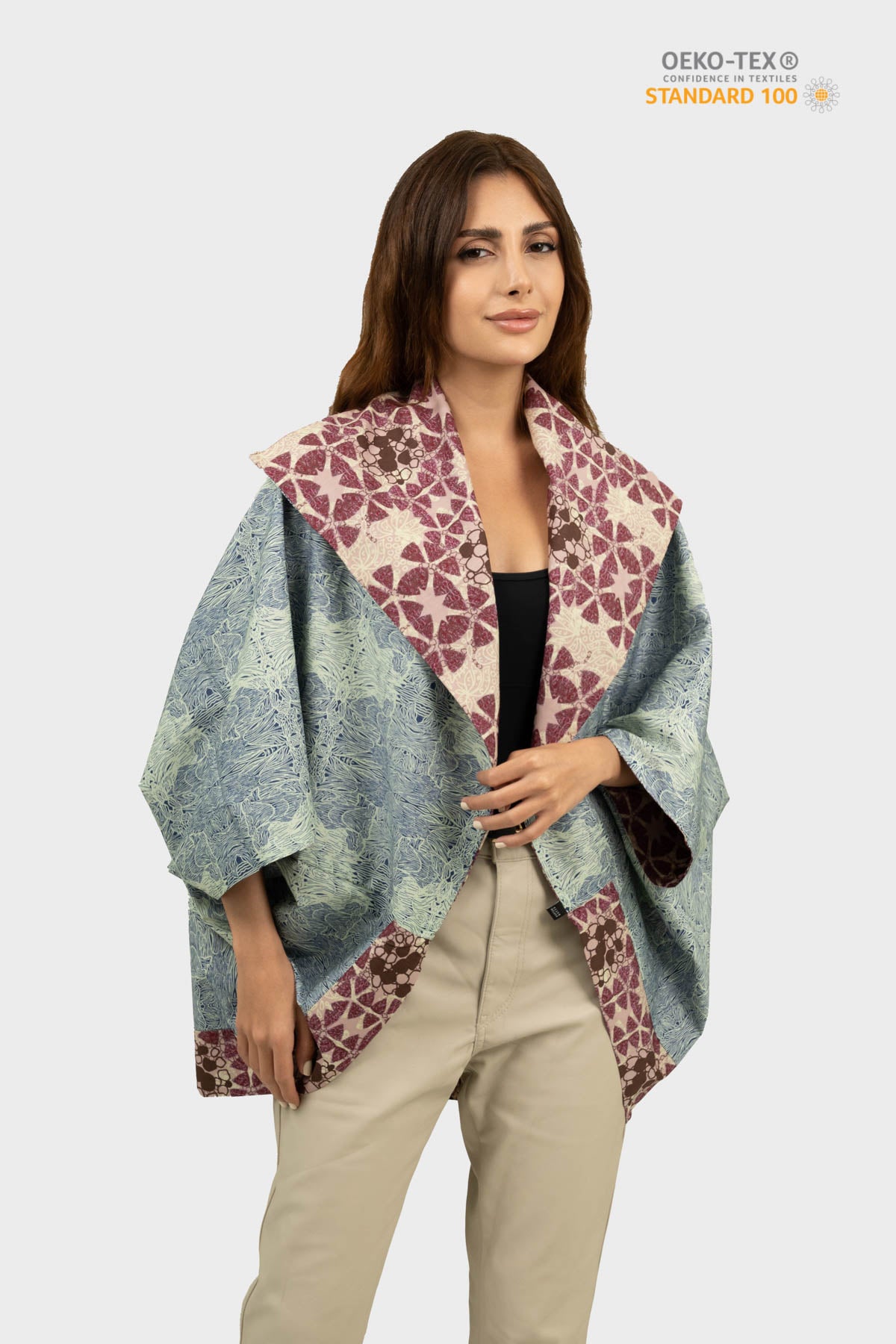 A versatile reversible stole designed with two distinct looks in one refined piece.