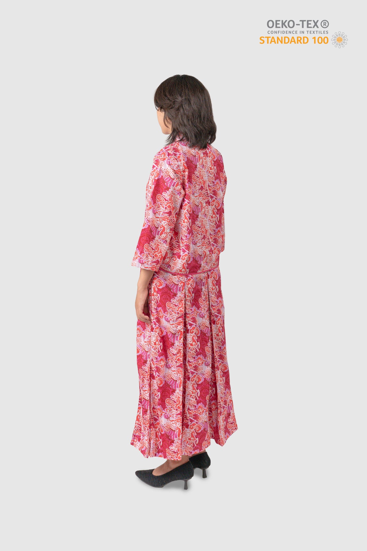 Expertly tailored using premium printed Malaysian batik, this cheongsam features elegant lines and a flattering silhouette that accentuates confidence and femininity. Each motif tells a story of artistry a fusion of classic Chinese design and intricate local craftsmanship that makes every piece truly unique.