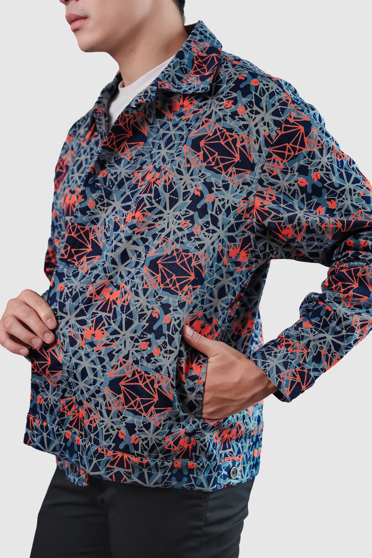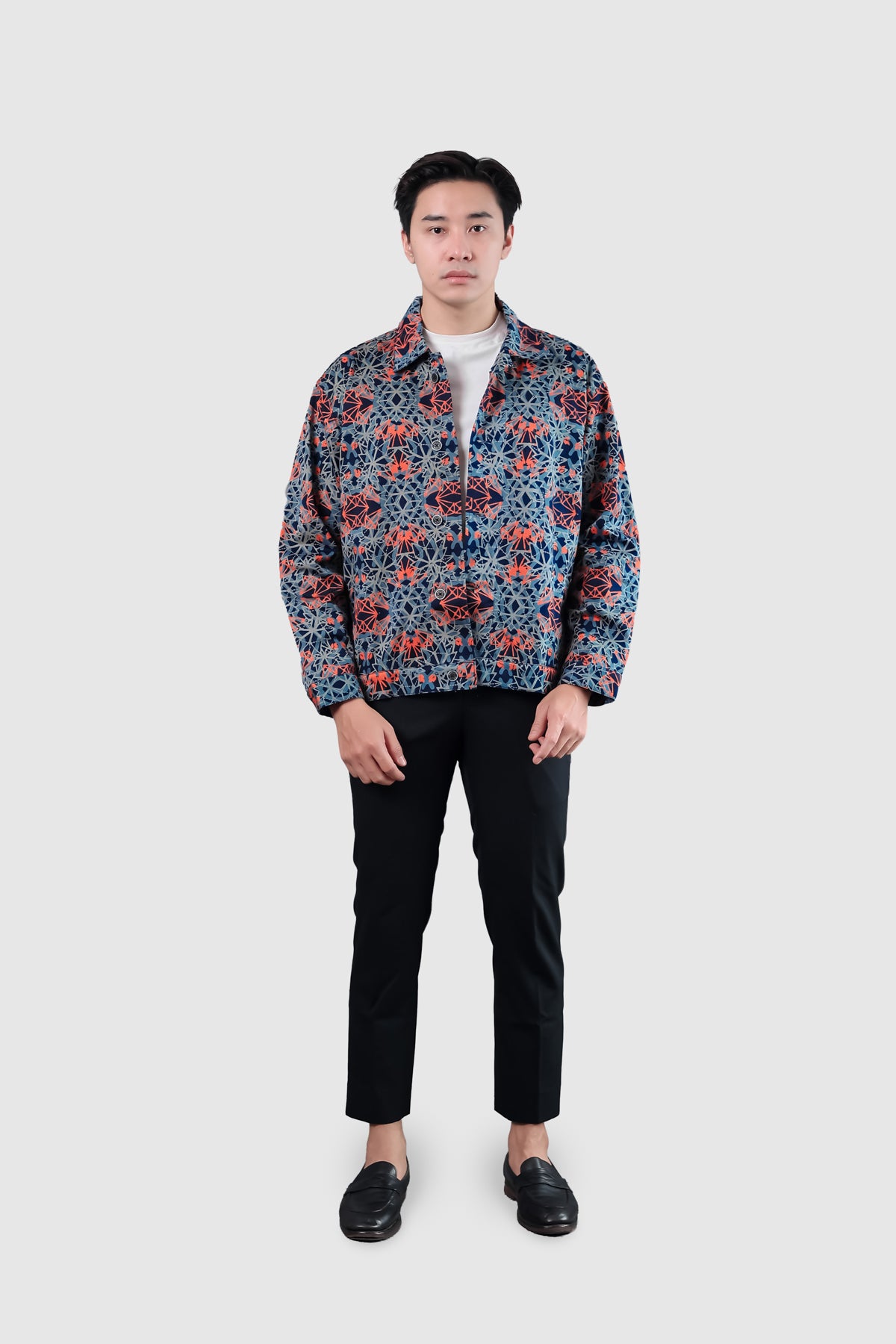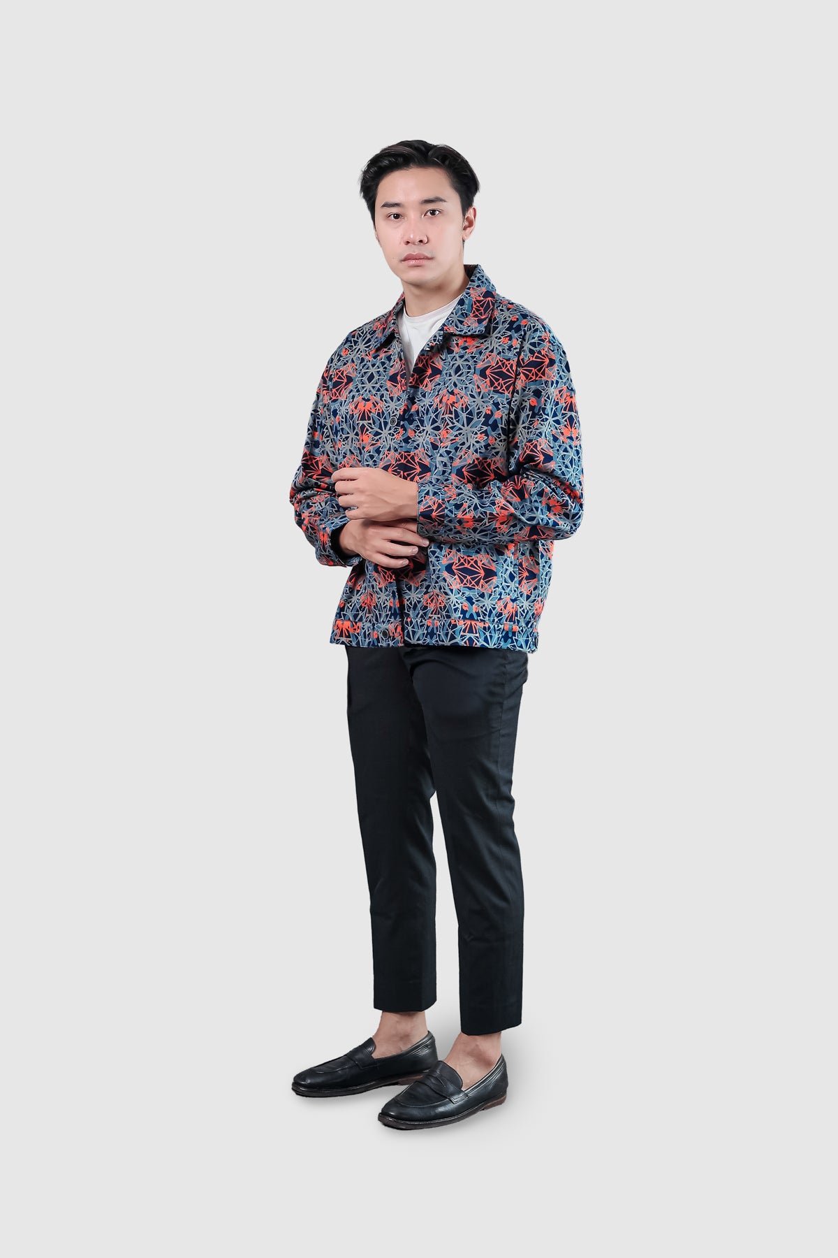 Cut from heavyweight cotton canvas and hand-blocked with batik, the Endura Jacket holds a sense of craft and quiet strength. Its dense weave gives structure and shape, softening gradually with wear until it feels unmistakably yours.